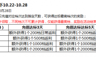 0活动时间:10月1日—10月8日规则:活动期间,玩家累计充值达到指定金额可获得对应档次奖励(活动期间不与其他返利线下活动同时进行,奖励在活动结束后1天申请发放)