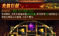 0《逐日战神》是一款以上古神话为背景的即时战斗网页游戏,传承经典中融合最新游戏技术独创多重创新玩法,演绎中西合璧的鬼神魔幻风格大战。金身系统、财富广场、热血攻城等等多个趣味无穷的玩法,以及震撼人心的极速疯狂PK,为你展现精彩绝伦的游戏人生!活动时间:4月2日-4月8日一、 幸运抽奖消费每达到一定金额,即可获得一次抽奖机会,每次抽奖皆可获得转盘上的一种奖励,直到转盘上的奖励全部获取完毕。 二、 千服回馈活动期间,等级达到80级以上的玩家可以领取一份回馈礼包 三、 限时抢购活动期间羽毛、龙魂、圣珠、特戒有VIP特权限时抢购里面,超低价回馈。 四、 勤劳致富活动期间,击杀一转及以上BOSS都会获得1个烟花,收集后的烟花可以兑换以下奖励,每种奖励每天只能兑换一次。 五、 累充礼包活动期间,充值达到1000、10000、2