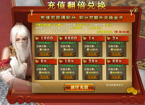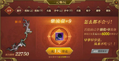 0美人相伴,征战天下!传承经典端游国战玩法《御龙在天页游》美人版不限号不删档测试【60服-万箭齐发】6月28日(周四)11:00火爆开启!将同步开启多种福利活动,精彩不容错过。注:活动奖励以游戏内实际展示为准。活动一:百万绑金免费摇 开服第一天开始,每日在线时间累积到10/20/30/60/120分钟的玩家,可参与拉杆摇奖,每名玩家总共可获得100万绑金,摇完即止。 活动二:充值翻倍 开服前两天,充值可额外获得积分,玩家可消耗该积分换取等额金子。 活动三:一元购9星紫装每天充值一元即可领取一件9星紫装,可以提前600RMB秒杀全套 活动四:升级领20万绑金等级越高,奖励越高!升级角色就送绑金,每个角色总共可领取20万绑金! 活动五:一元首充送199元礼包 活动六:美人巡游发豪礼 活动七:成长基金大返利 活动八:御